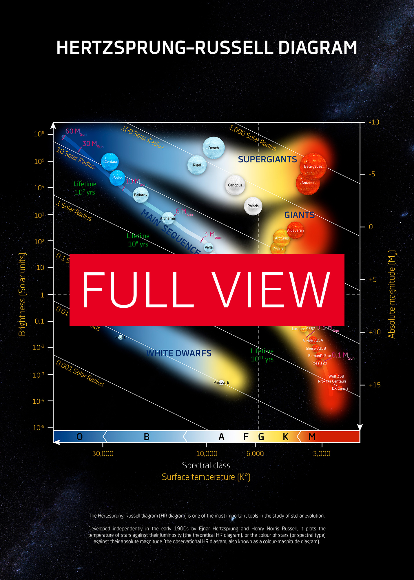 Hertzsprung-Russell diagram, HR diagram/HRD chart — science poster. Also available on eBay and Displate.